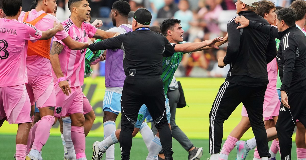 Escándalo en la final de Seattle Sounders vs. Inter Miami: Suárez escupió a un rival en medio de piñas y empujones