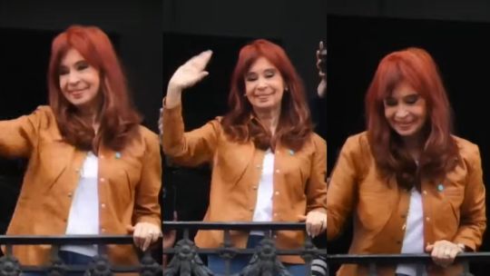 La primera aparición de Cristina comenzó cerca de las 15:30 y terminó alrededor de las 16:10, siendo una de sus salidas más largas, con más de 40 minutos en el exterior. Vestida con una campera caqui, remera blanca y una escarapela, saludó a la multitud, agitó con el brazo y respondió a los cánticos de los militantes, que entonaron de manera unánime: “¡Vamos a volver!”. La escena se vivió con aplausos, gritos y una presencia masiva que colmó la cuadra del barrio de Constitución.