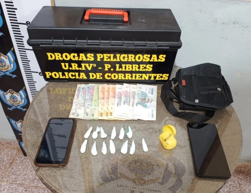 Dos hombres, uno de 18 y otro de 39 años, fueron demorados durante la noche del viernes en la localidad correntina de Paso de los Libres, tras ser interceptados por efectivos policiales que realizaban un control preventivo. Los sospechosos, que circulaban en una motocicleta de 110 cc, fueron puestos a disposición de la Justicia tras el secuestro de 13 envoltorios de cocaína.
