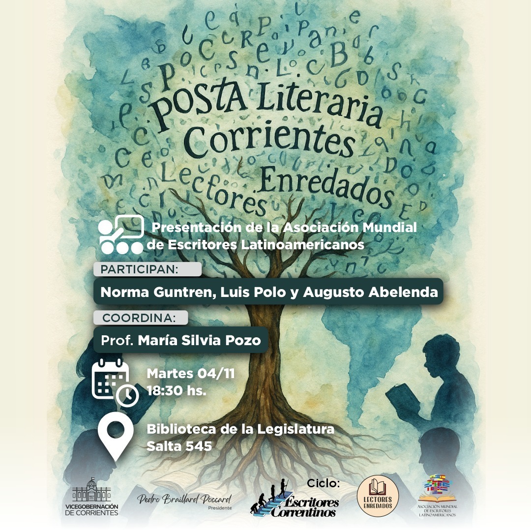 El evento se llevará a cabo el martes 4 de noviembre, a las 18:30 horas, en la Biblioteca de la Legislatura Provincial, como parte del Ciclo de Escritores Correntinos, coordinado por la Prof. Silvia Pozo, y contará con la participación de Norma Guntren, Luis Polo y Augusto Abelenda, tres reconocidos referentes que integran la mencionada red y que se destacan por su compromiso con la promoción de la producción literaria local y nacional.