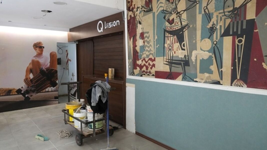 El mural del local ubicado en el ingreso de la galería, por peatonal San Martín, permaneció durante cinco años tapada por un mueble, mientras el local estuvo ocupado por la óptica Schellas. En las últimas semanas, cuando el comercio encaró su mudanza a otro local de la peatonal Córdoba, el mural volvió a quedar expuesto: sucio, descolorido y descascarado, tal como lo encontraron los últimos inquilinos del local.