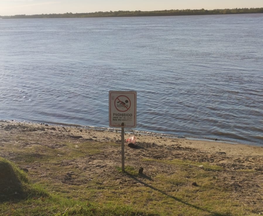 Un cartel lo avisa: la playa está inhabilitada. A pesar de que la propia intendenta Rosario Romero había anunciado que estaba permitido el ingreso al agua, junto al Balneario Thompson y el Balneariomunicipal, el lugar está vedado a los bañistas.