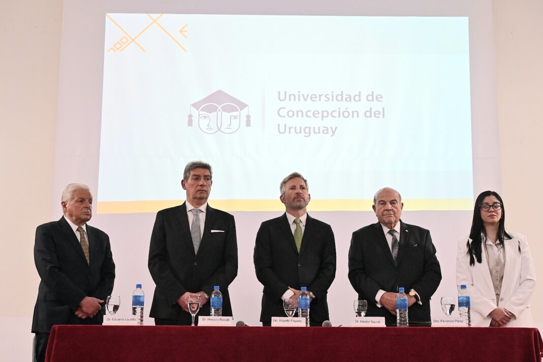 El gobernador Rogelio Frigerio intervino este viernes en el acto académico de la Universidad de Concepción del Uruguay (UCU) donde se le otorgó la distinción Honoris Causa al doctor Horacio Daniel Rosatti, presidente de la Corte Suprema de Justicia de la Nación. Además, el mandatario entrerriano le entregó el decreto por el cual lo nombró Huésped de Honor de la provincia de Entre Ríos.