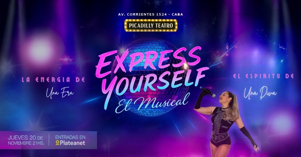 El jueves 20 de noviembre, el Teatro Picadilly abrirá sus puertas para el estreno de Express Yourself – Un tributo a Madonna, una comedia musical que no se limita a rendir homenaje a la artista más icónica del pop: la encarna, la reinterpreta y la resignifica desde el teatro, la danza y el sentimiento. Con dirección general y protagonismo de Fernanda Tello, la obra se perfila como uno de los estrenos más potentes y originales de la cartelera porteña.