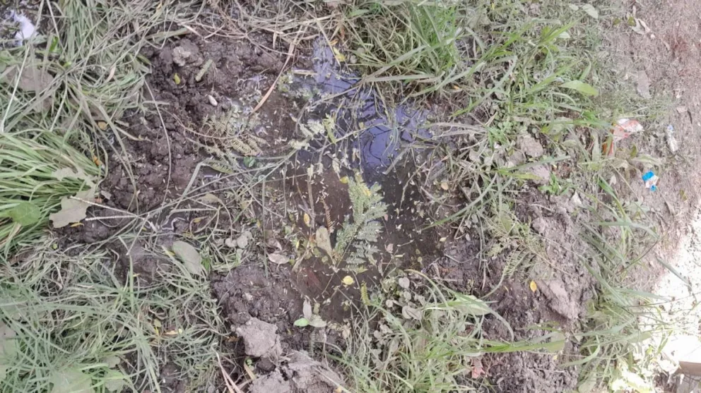 En una vivienda del Sector D10, sobre boulevard Martínez y 3 de Caballería, se registra una rotura en la conexión de la manguera con la llave de paso de responsabilidad municipal. Esta falla provoca la acumulación de agua limpia estancada en el terreno.